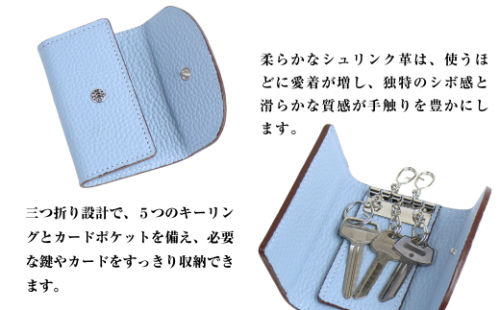 【シュリンク革製キーケース】(スカイブルー)