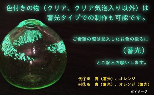 色付きの物(クリア、クリア気泡入り以外)は蓄光タイプも可能です。