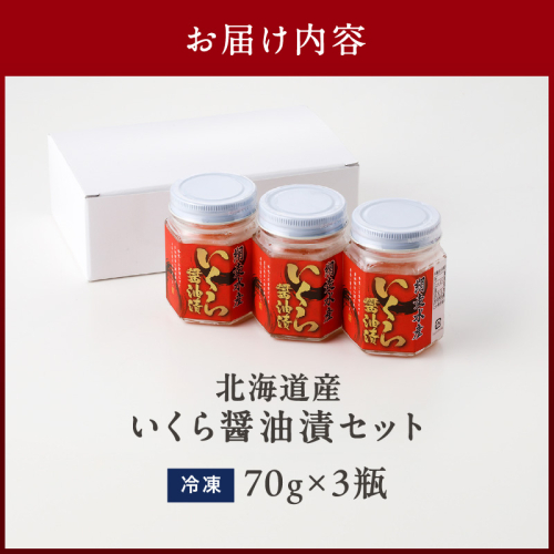 - 北海道産 いくら醤油漬セット 70g×3瓶 ( 海鮮 魚介類 魚卵 鮭卵 いくら イクラ 醤油 醤油漬け 海鮮丼 小分け 瓶詰め 北海道 贈答 ギフト プレゼント 贈り物 お中元 御中元 )【035-0024】