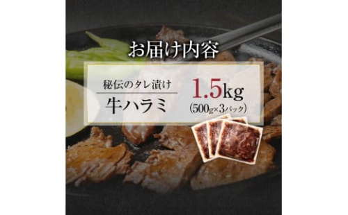 - 【12月26日決済分まで年末発送】秘伝のタレ漬け牛ハラミ 1.5kg(500g×3パック)【配送不可:離島】 年末配送 年末発送 味付き 牛ハラミ 大容量 国産 希少 牛肉 焼肉 サガリ ハラミ 牛 焼き肉 BBQ 牛サガリ丼 ホルモン 冷凍◆