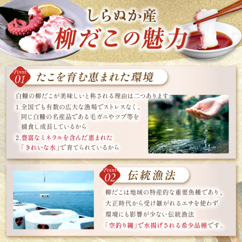 しらぬか産柳だこ(600g)と珍味(まんまの三杯酢・まんまの塩辛)の計3種セット