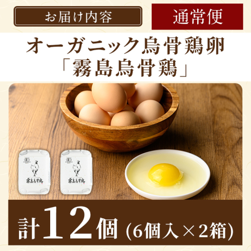 K-331-A <通常便>オーガニック烏骨鶏卵「霧島烏骨鶏」(計12個・6個入×2箱)【お多福たまご】有機JAS 放し飼い自然卵 霧島市 国産 九州産 鹿児島県産 たまご 卵 鶏卵 烏骨鶏 うこっけい 朝食 通常便