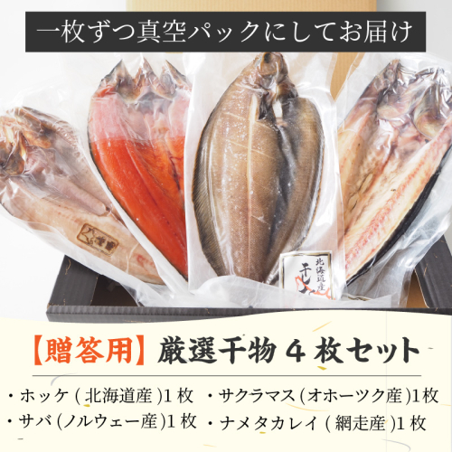 - 【贈答用】厳選干物4枚セット ( 魚介類 海鮮 海の幸 干物 魚 ほっけ ホッケ さば サバ サクラマス 一夜干し 贈答 ギフト )【094-0092】