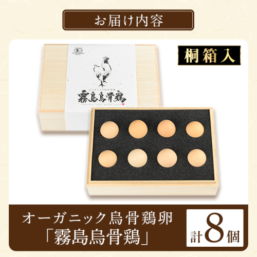 K-332 《桐箱入》オーガニック烏骨鶏卵「霧島烏骨鶏」(8個入)【お多福たまご】有機JAS 放し飼い自然卵 霧島市 国産 九州産 鹿児島県産 たまご 卵 鶏卵 烏骨鶏 うこっけい 朝食 ギフト 贈答 プレゼント