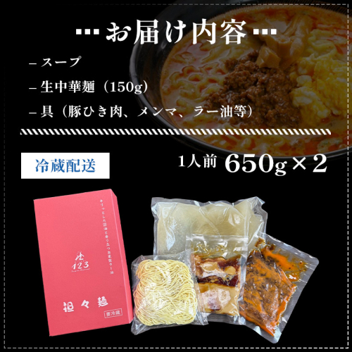 - ■担々麺2人前(1人前×2個)×6ヶ月連続お届け