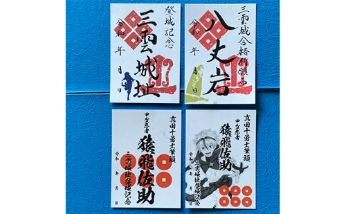 猿飛佐助のふるさと三雲城址オリジナル御城印帳3冊セット(濃茶色・赤色・アニメ版猿飛佐助)です。