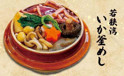 地元名産品を使った冷凍本格釜めし5種(若狭牛すき焼き、福地鶏親どり、ふくいポーク豚角煮、若狭湾イカ、、菜食(おーい椎茸)。福井県の嶺南地域には御食国(みけつくに)や鯖街道(さばかいどう)など地魚にまつわる歴史が沢山あります。御食国とは、日本古代から平安時代まで、新鮮な海水産物などの食料を朝廷に献上する役割を担っていた国のことです。