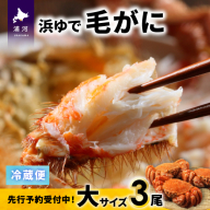 1尾約650g、大サイズ毛がにを3尾セットでお届けいたします。