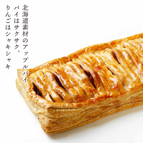 北海道の契約農家から仕入れたリンゴは食感を残しつつソテーし、北海道産の小麦粉、バターを使ったパイ生地で包み焼き上げたアップルパイです。