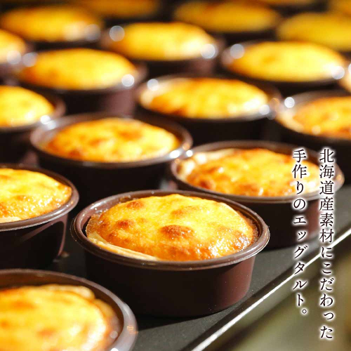 当店一番人気商品!北海道産素材にこだわったエッグタルト。外はサクッ、中はとろ~り焼き上げました。