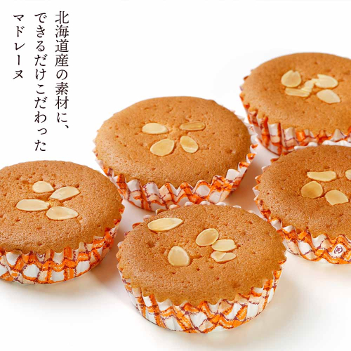 北海道産の小麦、バター、砂糖、地元白老産の卵を使用し、防腐剤や膨張剤などは一切使用しない、安心と安全のマドレーヌ。