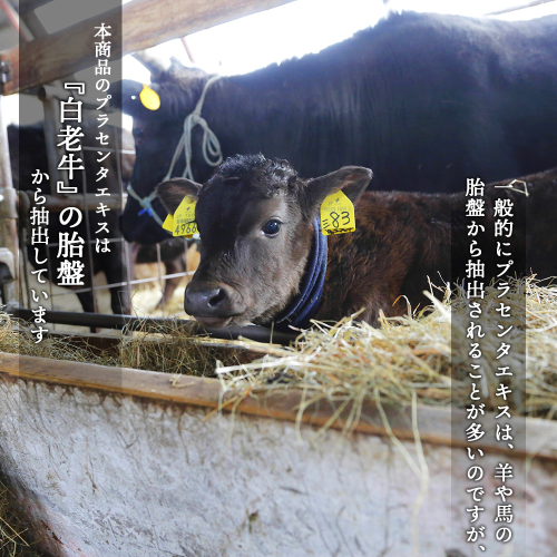 ・北海道白老町で生育される白老牛の胎盤から抽出したプラセンタエキスを、高濃度で製品化
