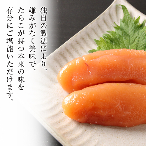 独自の製法により輸入原料を加工したものより嫌みが無く美味で、たらこが持つ本来の味を存分にご堪能いただけます。