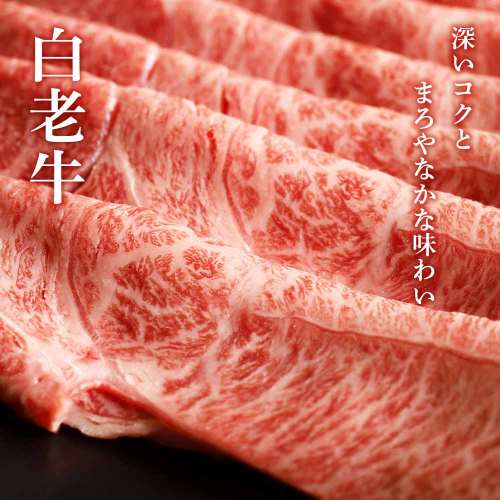 白老牛の中でも赤身のうま味が強く、きめ細かな肉質と和牛本来のおいしさを味わえる肩肉をすき焼き用にスライス。霜降りと赤身の旨みとコク、上品でまろやかな味わいをご堪能ください。