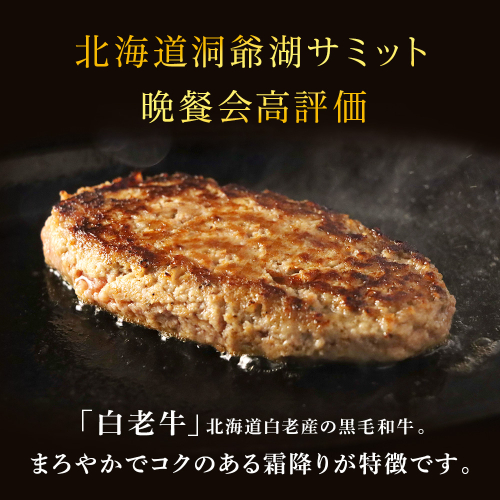 白老牛を育てる生産者直営店「牛の里」がお届けする、白老牛と北海道産牛肉を使用した、牛肉100%のハンバーグです。