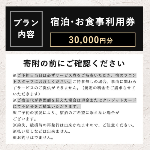 - K-345 麹発酵ホテルGEN 宿泊・お食事利用券(30,000円分)【きりしま高原麦酒】霧島市 宿泊券 宿泊 九州 旅行 チケット 旅行券 食事券 ホテル 麹 体験 トラベル 鹿児島 霧島