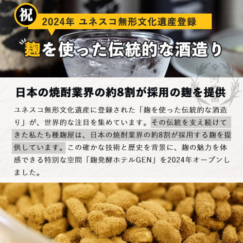その伝統を支え続けてきた私たち種麹屋は、日本の焼酎業界の約8割が採用する麹を提供しています。