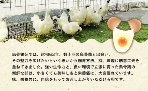 【配送不可:沖縄県・離島】 「烏骨鶏」という天然記念物の卵、ご存じですか? 小ぶりの卵からは想像できない濃さと甘味で、いくつも食べたくなる美味しさです。卵ご飯にするのがお勧め。お客様からは、「お醤油かけるのがもったいない」といわれます。一度食べたら忘れられない返礼品となれば幸いです。