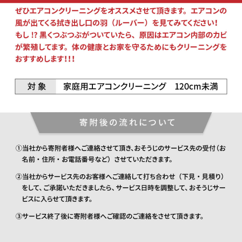 (1)当社から寄附者様へご連絡させて頂き、おそうじのサービス先の受付(お名前・住所・お電話番号など)させていただきます。