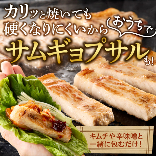 サムギョプサル:ジューシーなのでバラ肉から置き換えて!よりヘルシーにお楽しみいただけます。