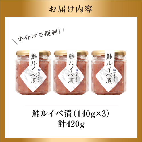 北海道産の天然の「鮭」と「いくら」のみを使用し、鮭から作った「鮭醤油」入りの特製醤油ダレに漬け込み、