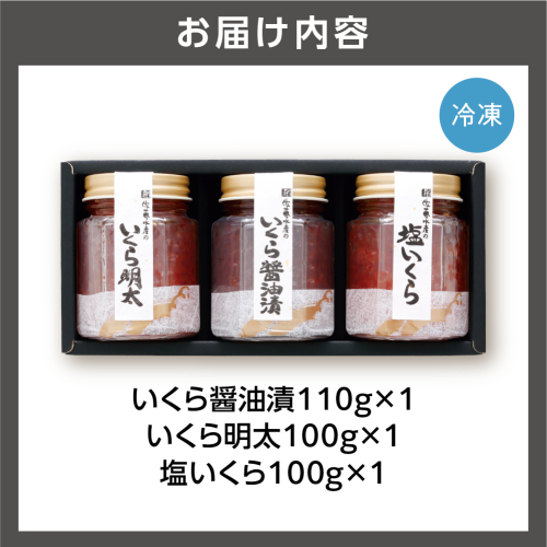 いくら醤油漬110g×1、いくら明太100g×1、塩いくら100g×1