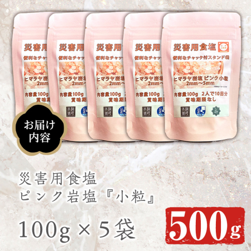 災害用 食塩 ピンク岩塩(小粒×5袋・100g/袋) ヒマラヤ岩塩 ピンク岩塩 岩塩 塩 食塩 調味料 ミネラル 熱中症対策 災害用 防災グッズ 災害対策 備蓄 【梅研本舗ジャパン】akn047-09