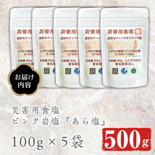災害用 食塩 ピンク岩塩(あら塩×5袋・100g/袋) ヒマラヤ岩塩 ピンク岩塩 岩塩 塩 食塩 調味料 ミネラル 熱中症対策 災害用 防災グッズ 災害対策 備蓄 【梅研本舗ジャパン】akn047-10
