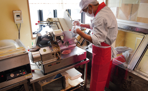 お召し上がりになる時はお好みの厚さにステーキカットしフライパンで焼いてお召し上がりください。薄くスライスしてハムの様にもお使いになれます、両端の部分は細かく切ってピラフやチャーハンの具としてご使用になれます。