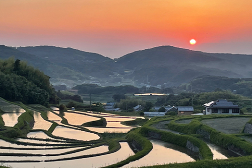 淡路島北部の寒暖差の大きい棚田は美味しいお米を育てます。