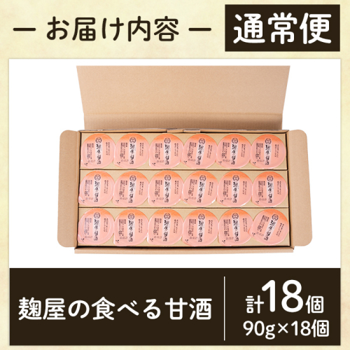 A7-006-A 《通常便》麹屋の食べる甘酒「お米と麹だけ」1個90g(計18個)【河内菌本舗】霧島市 甘酒 あまざけ 麹甘酒 麹 こうじ ノンアルコール 無加糖 食べる 発酵食品 飲む点滴 健康 美肌 通常便 191511 - 鹿児島県霧島市