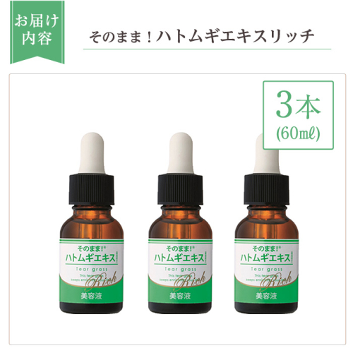 K-351-B そのまま!ハトムギエキスリッチ美容液(20ml×3本)【ドウシシャ】霧島市 ハトムギ ヨクイニン 美容液 集中ケア 保湿 角質ケア 無香料 無着色 パラベン不使用 日本製