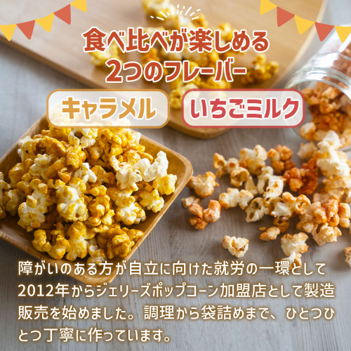 菓子 ジェリーズ ポップコーン 2種 各2袋 Mセット [社会福祉法人 柚の木福祉会 Create803 福岡県 宇美町 um40azp020001] キャラメルポップコーン いちごミルク お菓子