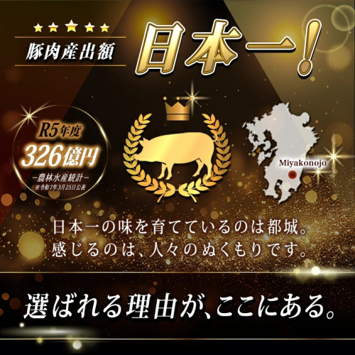 都城市は、肉用牛、豚、鶏の合計畜産産出額が日本一を誇る畜産のまちです。 当市の牛、豚、鶏は、雄大な霧島連山の自然に囲まれた大地で生まれ、清らかな水、良質な飼料、農家の温かい愛情が注がれ、大切に育てられています。 牛肉は、都城市内生産者の努力のもと、きめ細やかな霜降りと色艶の良い柔らかい肉質が特徴です。 5年に一度和牛の日本一を決める「第12回全国和牛能力共進会」(R4年10月)において、都城産の宮崎牛が最高賞である内閣総理大臣賞を4回連続受賞いたしました。 豚肉は、養豚農家各々が厳選した穀物に酵母、乳酸菌などを加えた飼料を与え、良質な肉質が特徴で多くのブランド豚が確立されています。 鶏肉は、それぞれの銘柄に合わせて独自の飼料や飼育方法で生産されています。 日本一の出荷額を誇る焼酎は、霧島山麓で育つサツマイモや地下深くからくみ上げられた清らかな水などを原料に作られ、全国の愛飲家に愛されています。市内4つの蔵元が生み出す、吟味を重ねた味わい深い個性的な焼酎は、たくさんの人たちを魅了し続けています。 「MADE IN 都城」、つまり「都城産」にこだわっています!