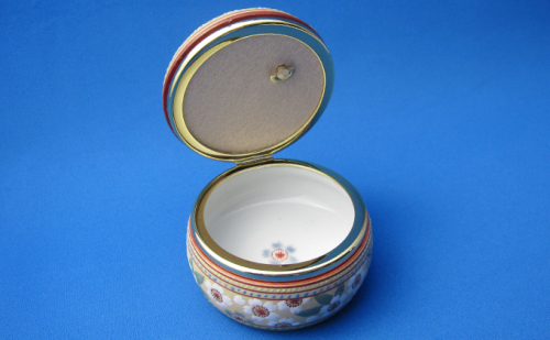 九谷焼の豊かな色彩と白盛など様々な技法を金彩の上に使い、桜とオオトリをモチーフに豪華絢爛に仕上げているオルゴールです。
