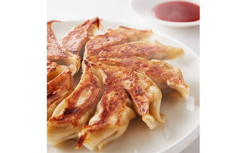 純国産「美味蔵餃子」は能美市特産「加賀丸いも」を皮に練り込み、餡には豚肉、キャベツ、ニラなどを「美味蔵秘伝のたれ」で混ぜて包みました。もっちりとした皮と特製餡のコラボレーションをご家庭でどうぞご賞味下さい。