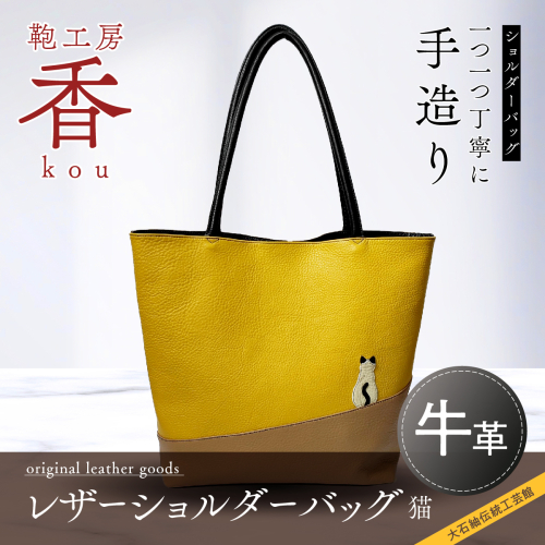 - 「鞄工房 香」レザーショルダーバッグ 猫 FAA3039