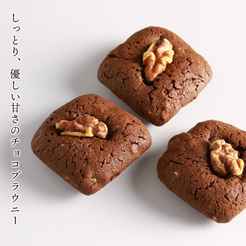 北海道産の小麦、バター、砂糖、地元白老産の卵を使用し、防腐剤や膨張剤などは一切使用しない、安心と安全ブラウニー。