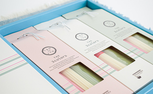 カラフルな個箱に、3色の揖保乃糸を入れ、窓穴からカラフルな麺が見えるように工夫。ロゴは家紋風にし、英字と組み合わせおしゃれなデザインに。華やかで縁起の良いそうめんは、お祝いやお礼などの贈答用にも大変喜ばれます。もちろん、普段の食事にもお使いいただけ、食卓を鮮やかに彩ります。