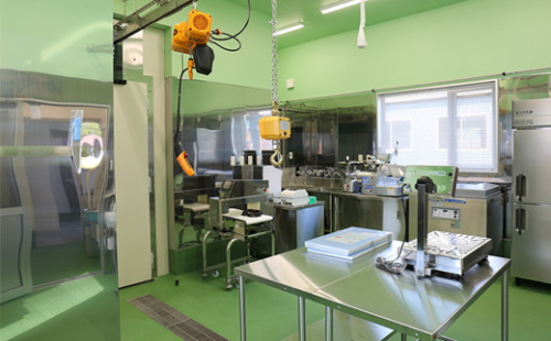 「オホーツクジビエ」ではヘッドショット・ネックショットで仕留められかつ2時間以内の工場搬入という厳格な受入基準を持ち、また衛生設備については、各種消毒設備やリキッド急速冷凍機など最新設備を揃えています。