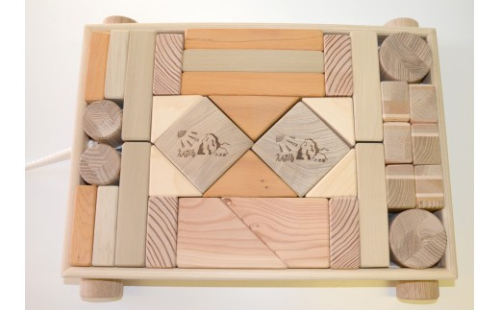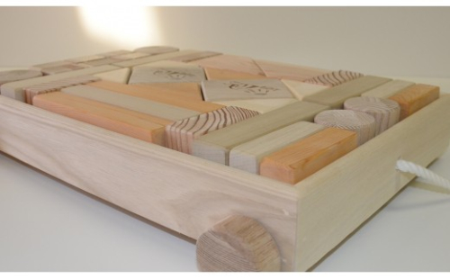 遠軽産木材を使用した大人気のおもちゃです。  10種類ほどの木材を材料としているので、種類によって異なる木目や色合いを楽しめます。また、積木を入れるケースには車輪が付いているので、ころころと転がしながら移動させることができます  色付けは全くしていませんので、お子さんがなめても安心・安全です。角も丸くしているので、けがの心配もありません。 ※商品は全て、天然木・手作りのため、木目や色味などが画像と異なる場合がございます。