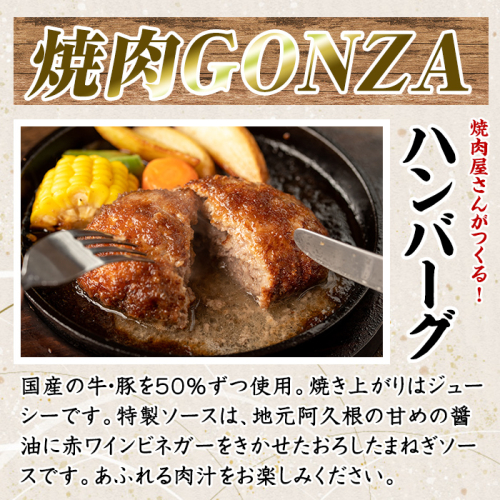 阿久根市の3号線沿いにある「焼肉GONZA」の手造りハンバーグ(専用ソース付き)です。