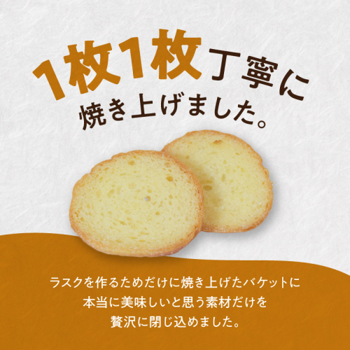 厳選素材と国産発酵バターのふくよかな風味が楽しめるプレーンラスク。