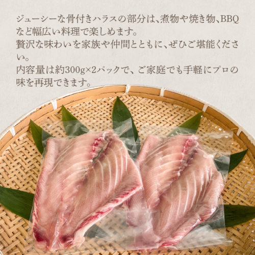 ジューシーな骨付きハラスの部分は、煮物や焼き物、BBQなど幅広い料理で楽しめます。