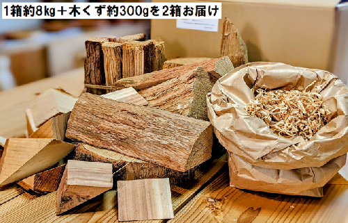 計約8kg+木屑約300gをセット/箱×2箱を結束して1梱包にしてお届けします。