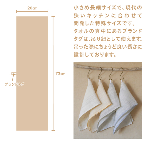 本製品は細いリネン糸を使用しているため、肌に優しく、使えば使うほど柔らかくなり、触り心地の良いタオルになります。