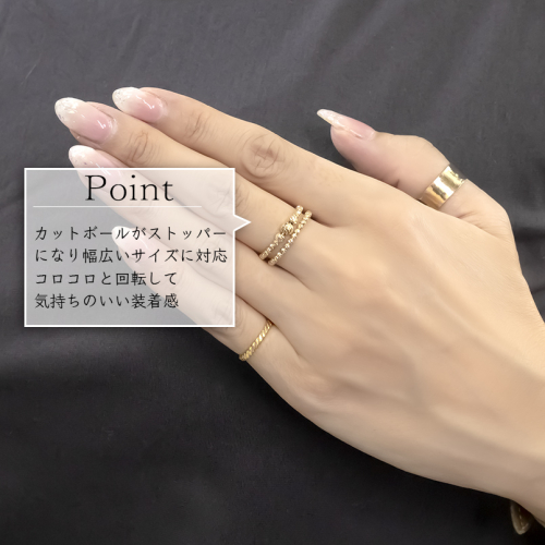 【商品詳細】 ミラーボールの動きでスムーズに簡単装着できるストレスのない着け心地 2連でフリーサイズタイプなので圧迫感が無く、指が浮腫んでも全く気にならない! リングサイズが緩い指輪のストッパーとしても活躍 ミラーボールが豪華で華やかに輝くテンションが上がるリング リングサイズ:10号~19号まで