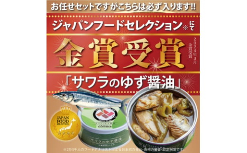 京都舞鶴 ゆず醤油 缶詰おまかせ 3缶 / 4缶 セット 75g/缶 CAN BRICK ジャパンフードセレクション 金賞 受賞 サワラのゆず醤油 さわら 万願寺とうがらし 入り 長期保存 備蓄 災害 キャンプ 保存食 缶詰 魚 海鮮 シーフード 旬