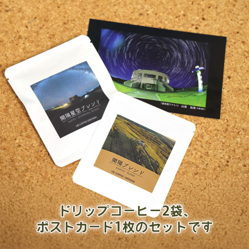 UB COFFEE オリジナル コーヒードリップパックC 計3点 | オンライン申請 ふるさと納税 北海道 中標津 コーヒードリップパック 2袋 ポストカード 1枚 限定 パッケージ コーヒー ドリップ パック 開陽 モアン クテクン 開陽星空 ブレンド ブラジル 珈琲 写真 ランダム 詰め合わせ お取り寄せ ワンストップ マイページ なかしべつ観光協会 中標津町