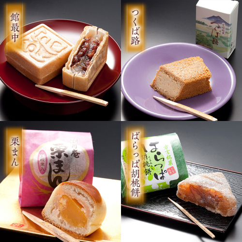 - 館最中×4個 つくば路×4個 栗まん×3個 栗パイ×3個 ばらっぱ胡桃餅×3個